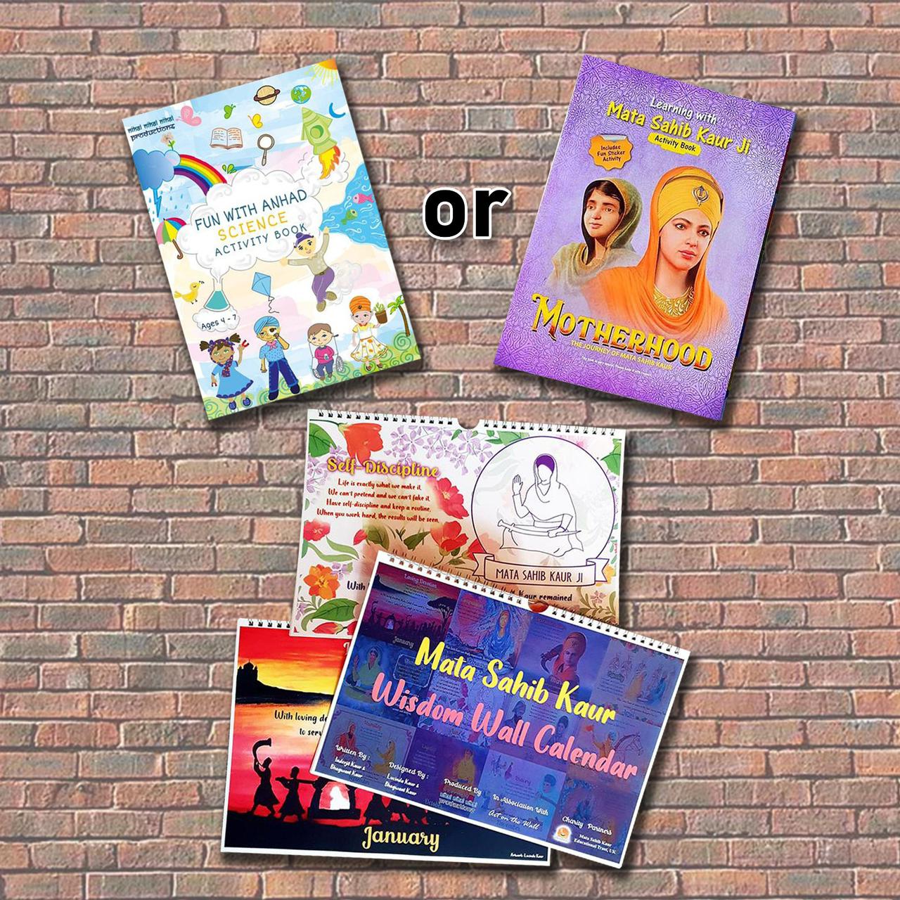 Buy one of the two amazing activity books alongside the Mata Sahib Kaur Ji Wisdom Wall Calendar.